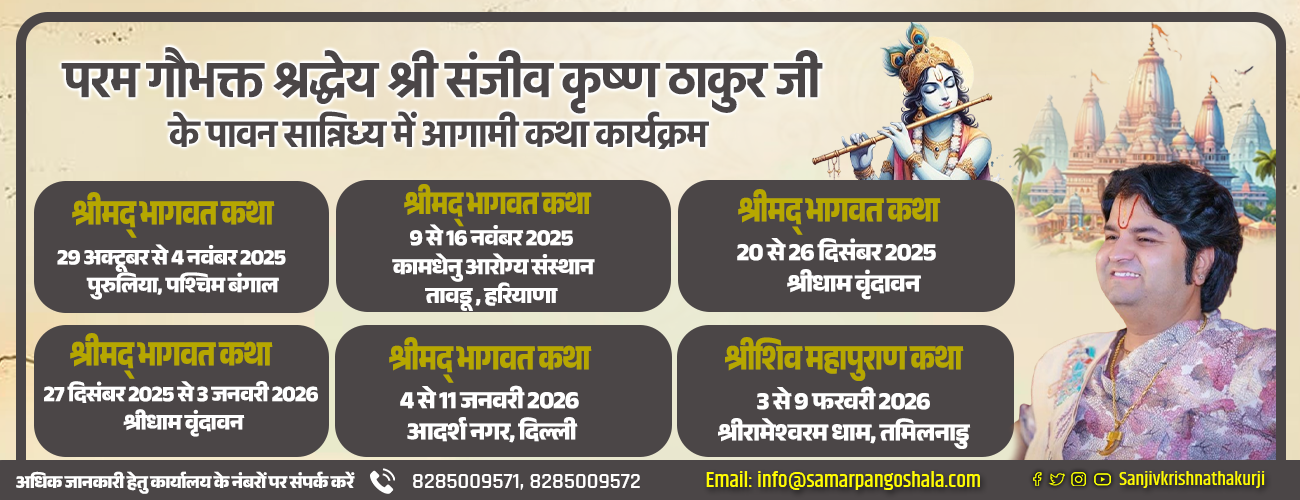 This moment changed Shri Thakur ji mind & He thought that we receite the katha of lord Shri Krishna who used to love monst in his life Cows (Gau matas). Due to sewa of Cows (Gau matas) Shri Krishna was called by name of Gopal.