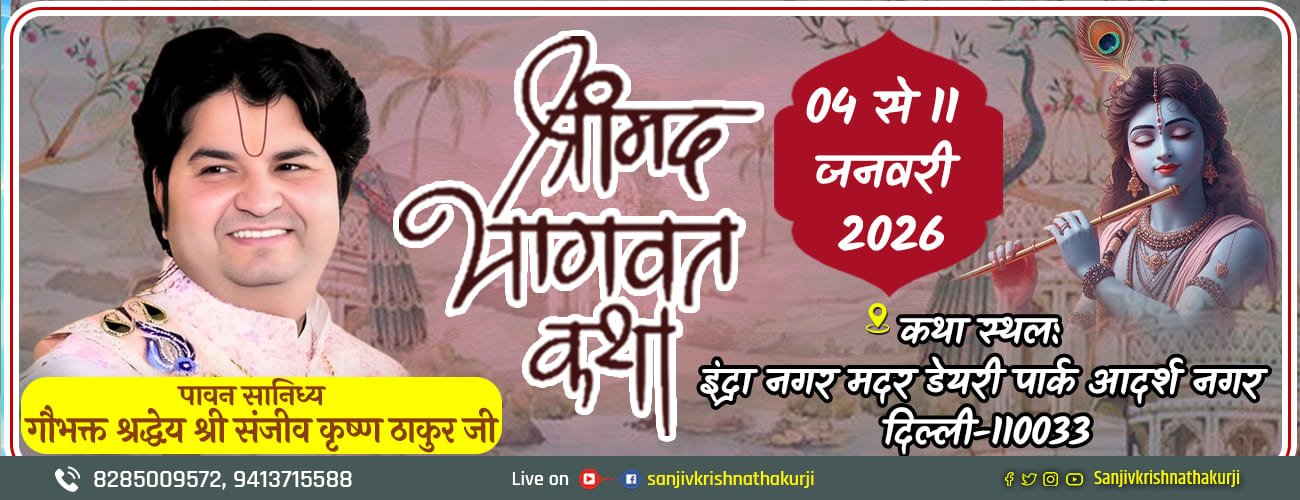 Thakurji rendered his first maiden Bhagwat Katha at the tender age of 12 In Phalen village in Braj Mandal. His father, grand father and grand mother were teachers. By the grace of Sadguru, Thakurji rendered his first maiden Bhagwat Katha at the tender age of 12 In Phalen village in Braj Mandal.